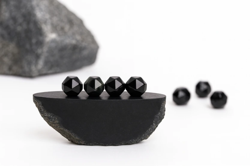 L’onyx noir est une variété de calcédoine, formée dans les cavités rocheuses lorsque la silice se dépose en fines couches successives. Avec le temps, la pression solidifie ces dépôts et donne naissance à la pierre sombre et profonde que l’on connaît.