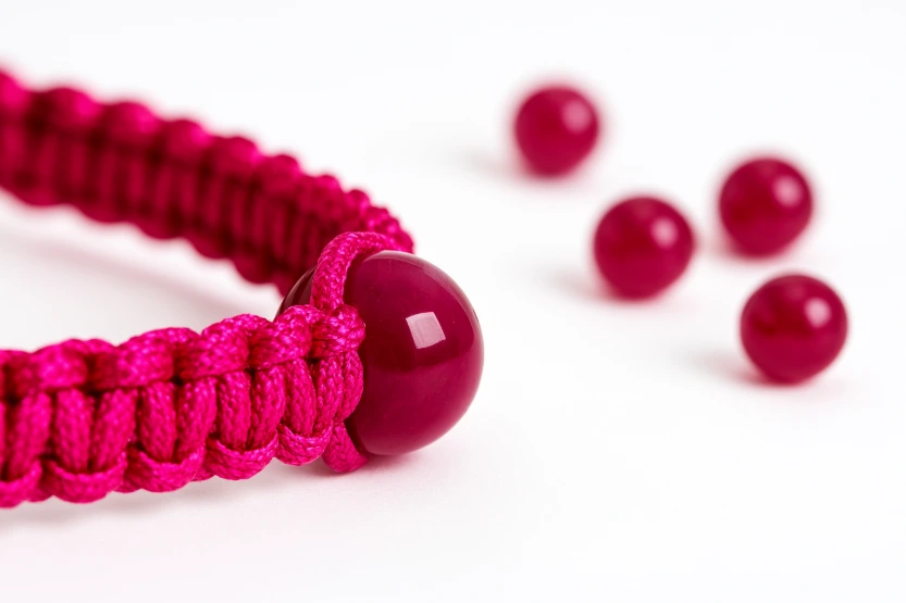 Cordon : 100% Nylon rose tissé en macramé, entièrement réglable