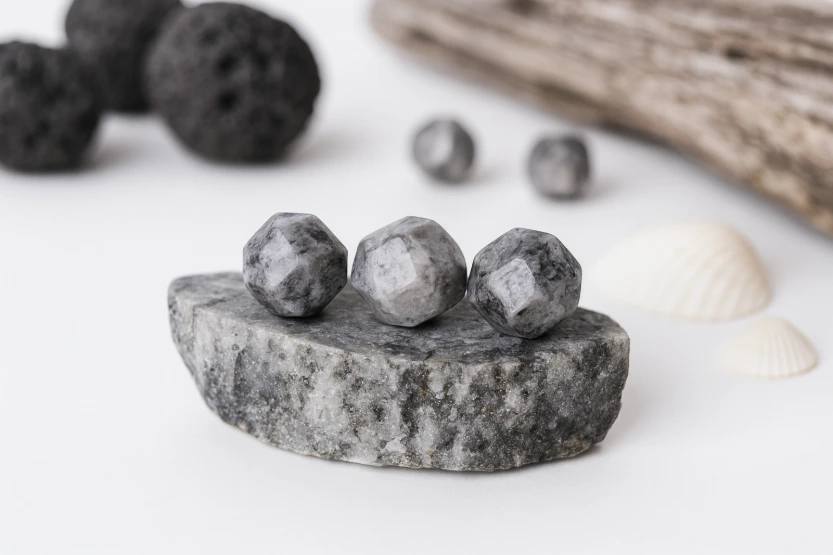 Le jaspe gris se forme au cœur des roches sédimentaires, lorsque la silice et les minéraux se compactent et se cristallisent au fil de millions d’années. Ses teintes neutres - du gris clair au gris profond - naissent des oxydes et impuretés qui s’y déposent, lui donnant un aspect minéral brut et apaisant.