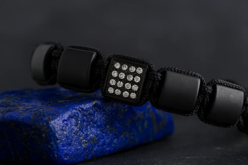 • Cordon : 100% Nylon noir tissé en macramé, entièrement réglable